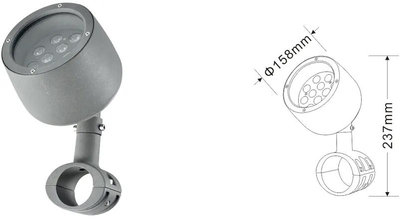 | LED COB Fokua | Con-tgd08-1 | Ø80 * 172mm | 3 * 3w | Materiala: aluminioa + beira tenplatua Parentesi mota: Erregulagarria IP: IP67 Kolorearen tenperatura aukerak: 3000k / 4000k / 6500k RGB / DMX512 (COB kenduta) Rgbw / dmx512 (COB kenduta) Gris tradizionala, pertsonalizagarria eraikitzeko fatxaden kolorearekin bat etortzeko |