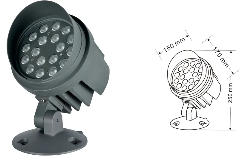 Aluminioa + beira tenplatua Parentesi mota: Erregulagarria IP: IP67 Kolorearen tenperatura aukerak: 3000k / 4000k / 6500k RGB / DMX512 (COB kenduta) Rgbw / dmx512 (COB kenduta) Gris tradizionala, pertsonalizagarria eraikitzeko fatxaden kolorearekin bat etortzeko |